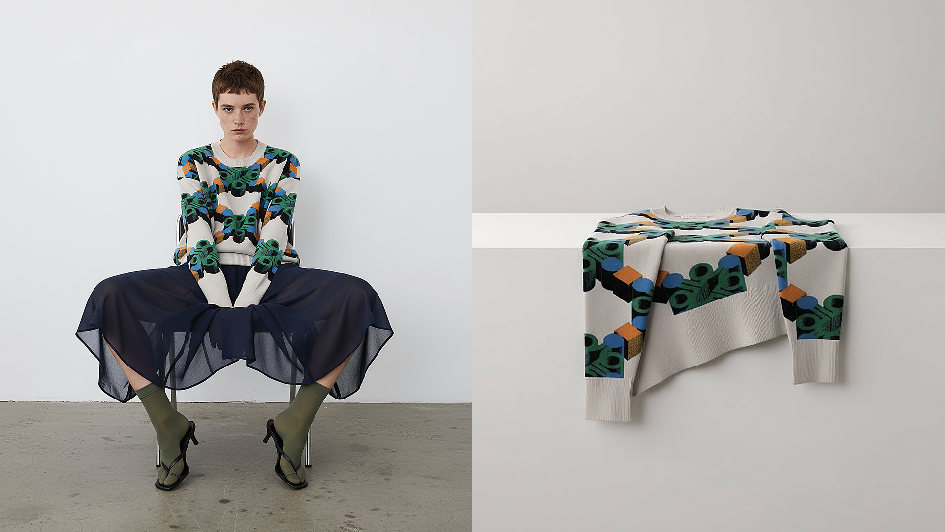 Each sweater is machine-knitted and hand-linked by skilled makers, where panels are connected by hand for precision and durability. The result is knitwear that carries both modern design language and traditional craftsmanship.
